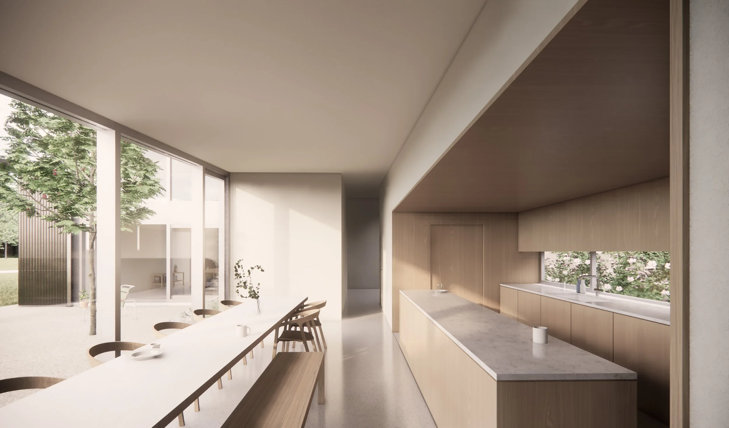 Given the unique park-side location and the residents’ frequent travels, the house may be opened to become part of the landscape, or closed securely on introverted days and periods away. Going beyond traditional oppositions between the home and office, inside and outside, fences and walls - the house is reconceived simply as a place for living, thinking, and working in nature - alone and with family and friends.